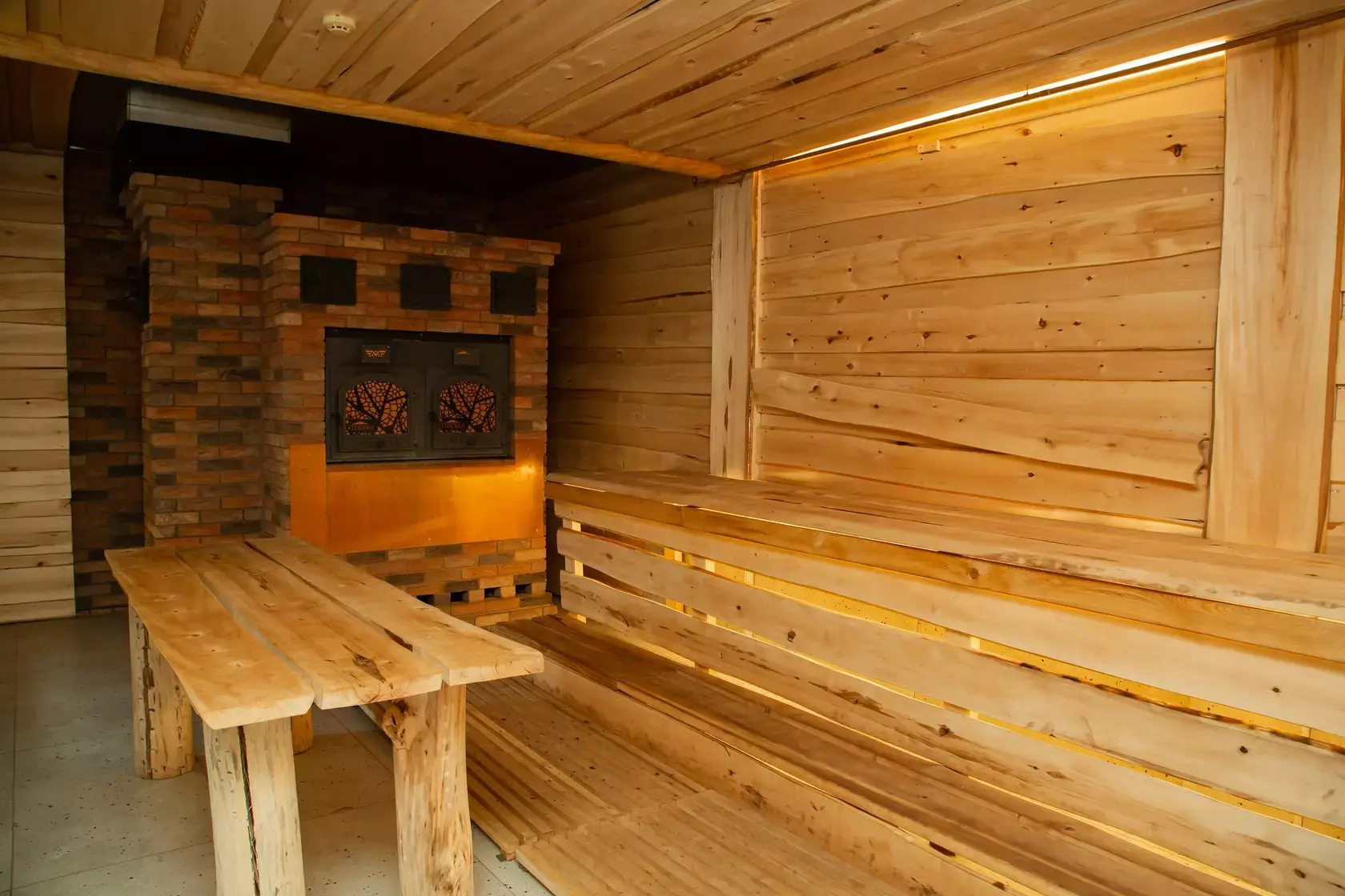 В сердце терема — русская парная на дровах с печью ТРОЙКА. Это просторное, тёплое помещение с мягким паром и натуральным древесным ароматом. Здесь вас ждёт настоящее русское тепло — без спешки, с лёгким дыханием и чувством обновления.