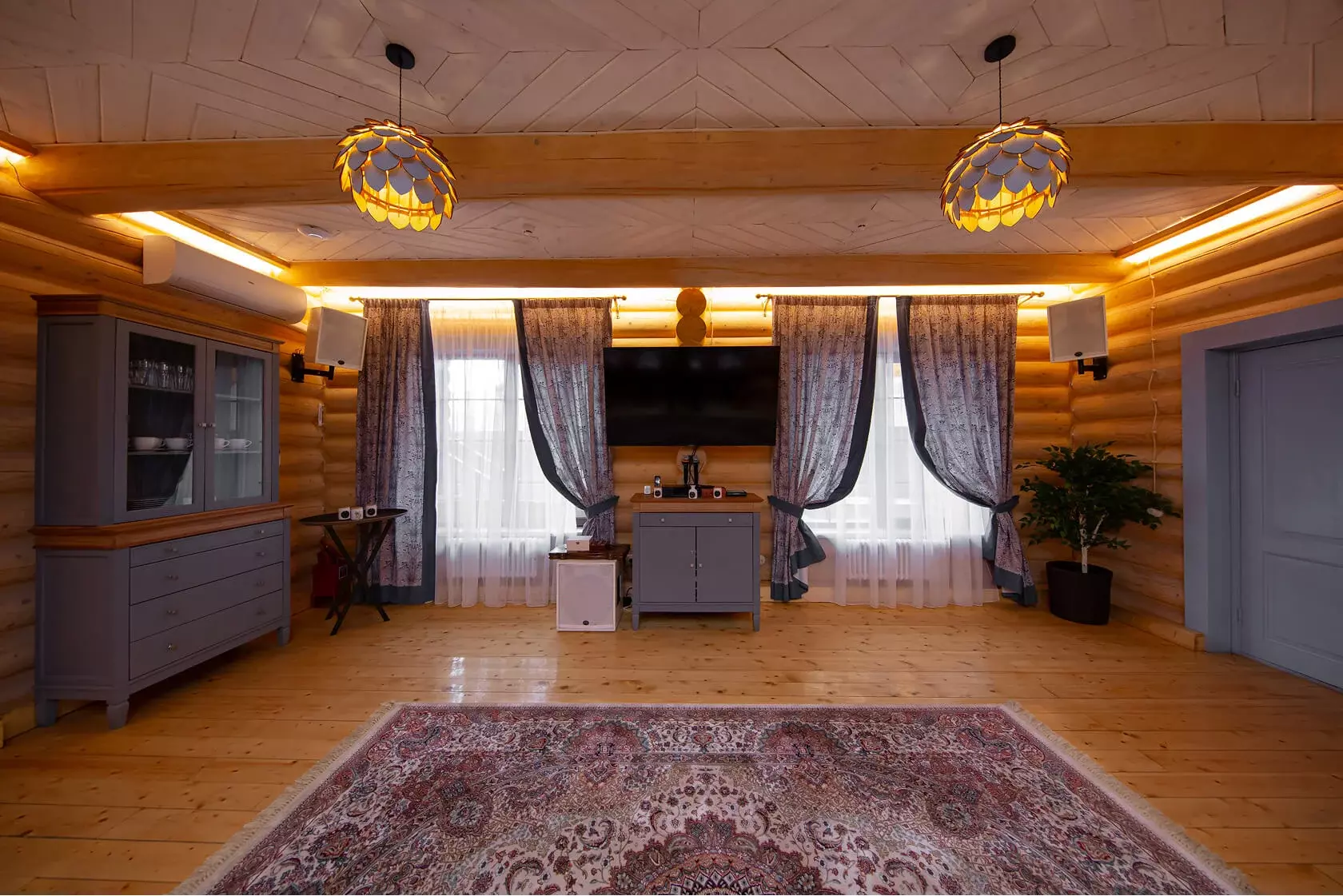 В тереме установлены: ♦ Smart-TV с доступом к стриминг-сервисам; ♦ караоке-система AST с большой библиотекой песен; ♦ профессиональная акустика для чистого звука и весёлых вечеров.
