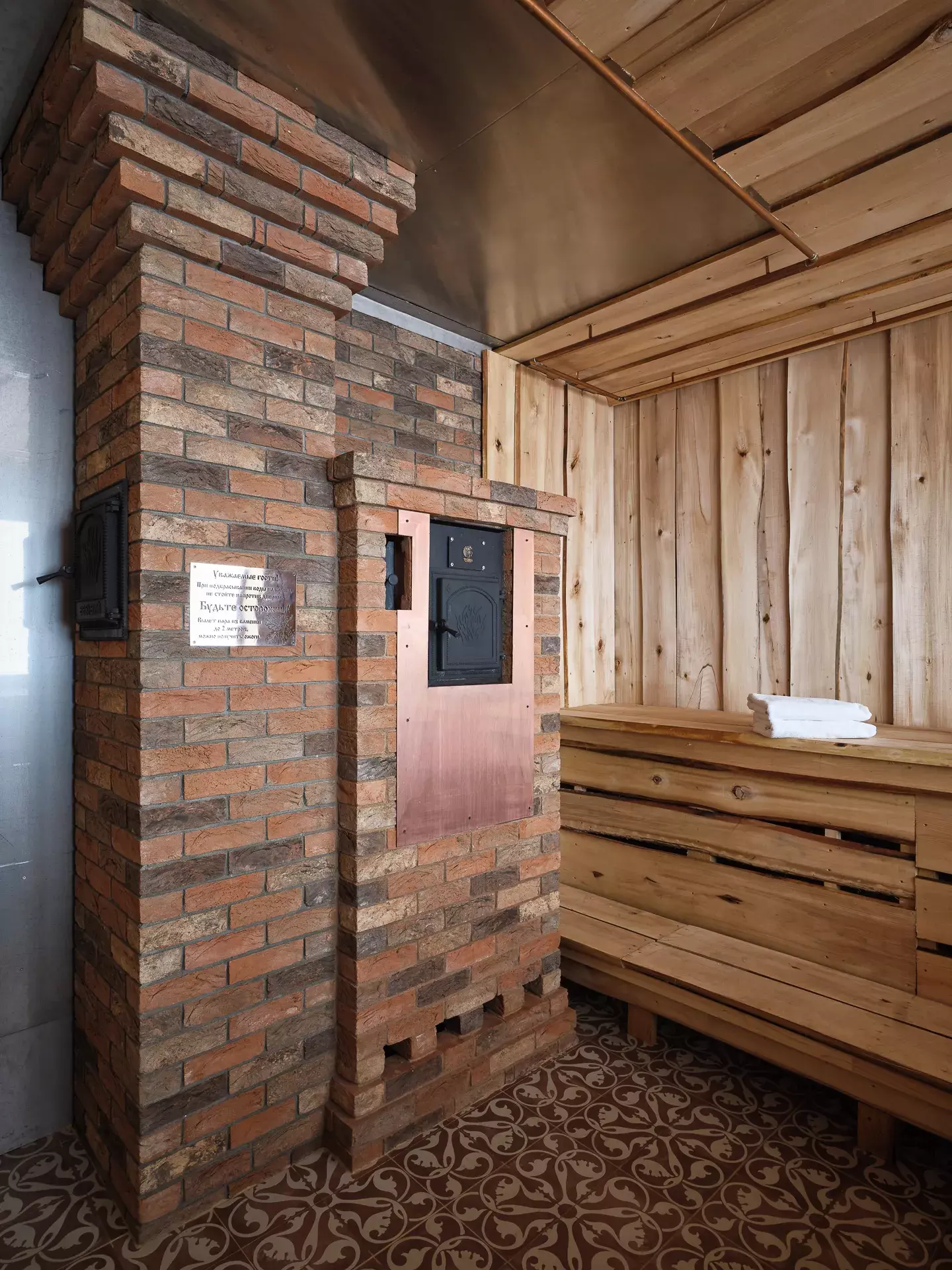 Сердце терема — русская парная на дровах с печью ТРОЙКА, где тёплый пар обволакивает тело, а аромат дерева помогает полностью расслабиться. Всё здесь продумано для вашего комфорта: температура, влажность и мягкое освещение.