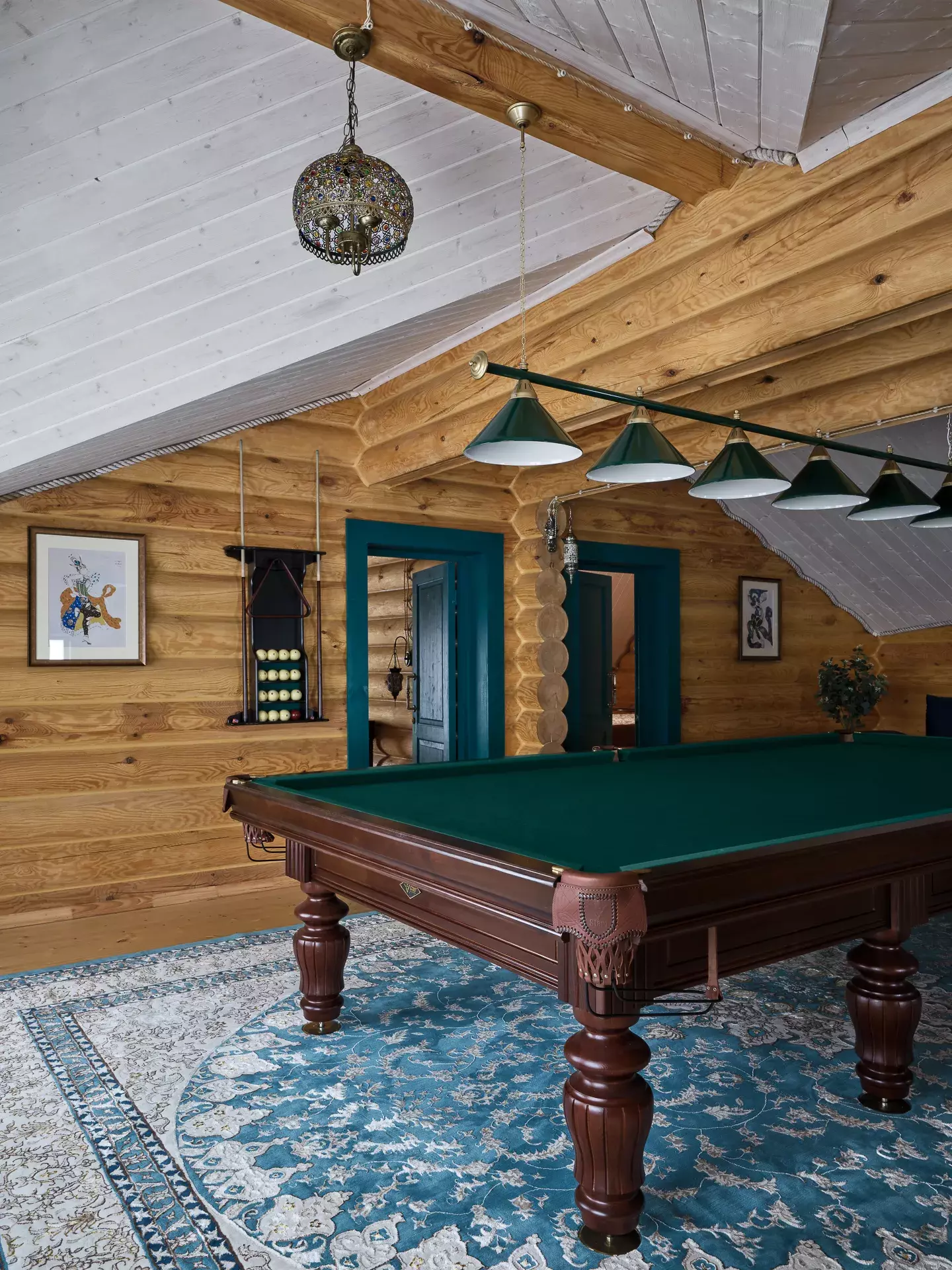 На втором этаже находится лаунж-зона — место для отдыха с мягкими креслами и подушками, где приятно расслабиться после парной или чашки ароматного чая. Здесь же — бильярд и настольные игры для весёлых компаний.