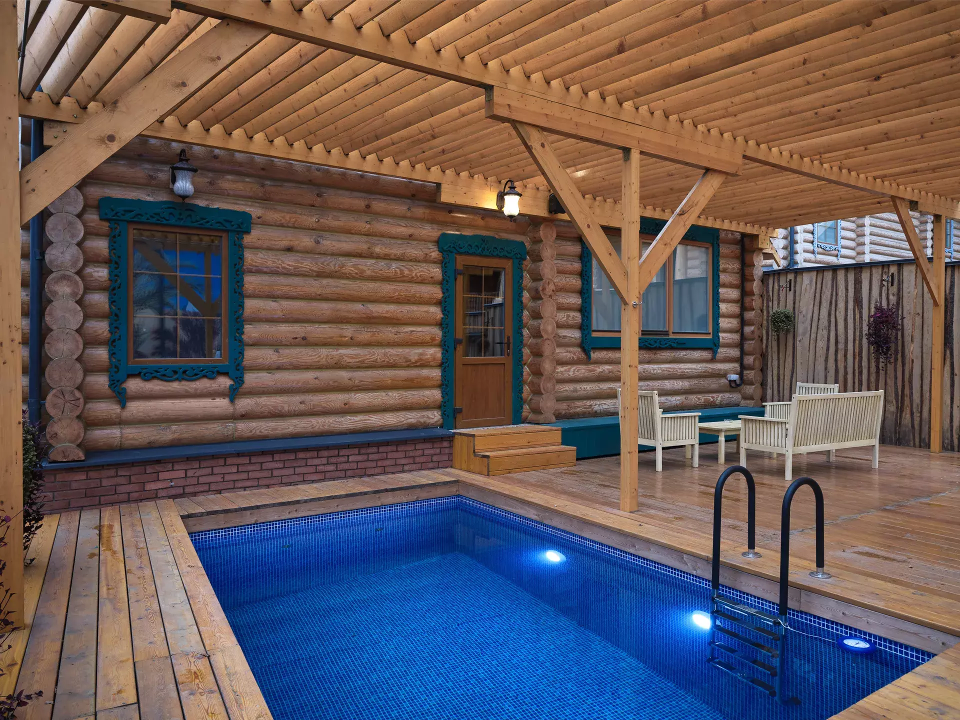 Во внутреннем дворике терема расположена купель под открытым небом и небольшой бассейн — естественное продолжение парных процедур. Контраст температур бодрит, наполняет энергией и оставляет приятное чувство лёгкости.