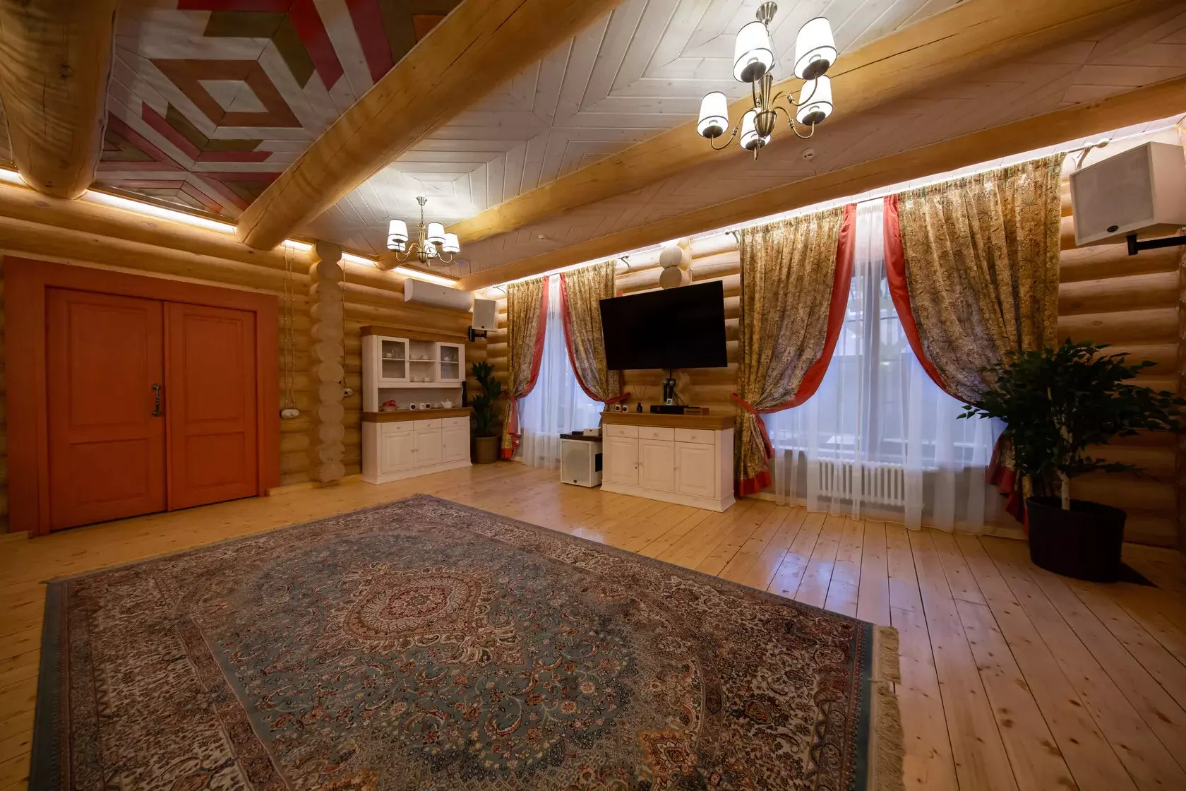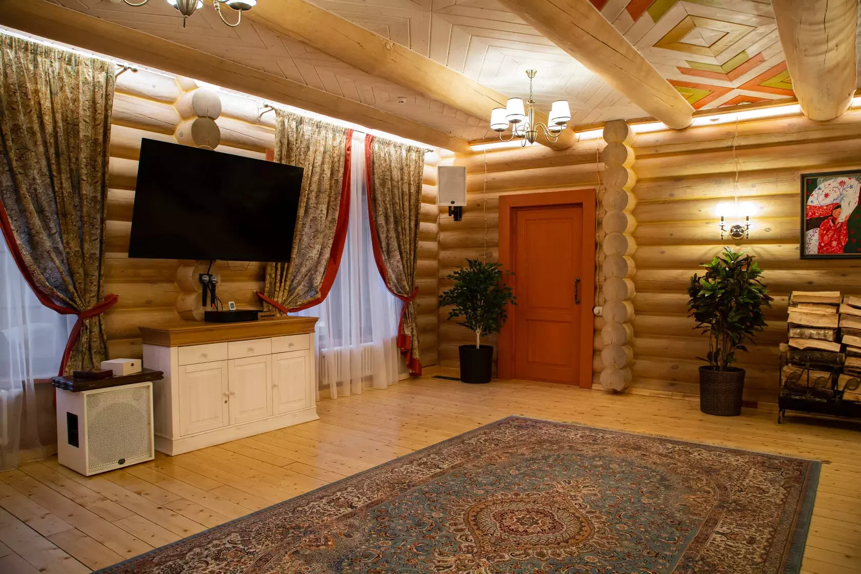 Для музыкальных вечеров и шумных компаний терем оборудован современной техникой: ♦ Smart-TV с доступом к стриминг-сервисам; ♦ караоке-система AST с тысячами песен; ♦ мощная акустика, создающая эффект живого концерта.