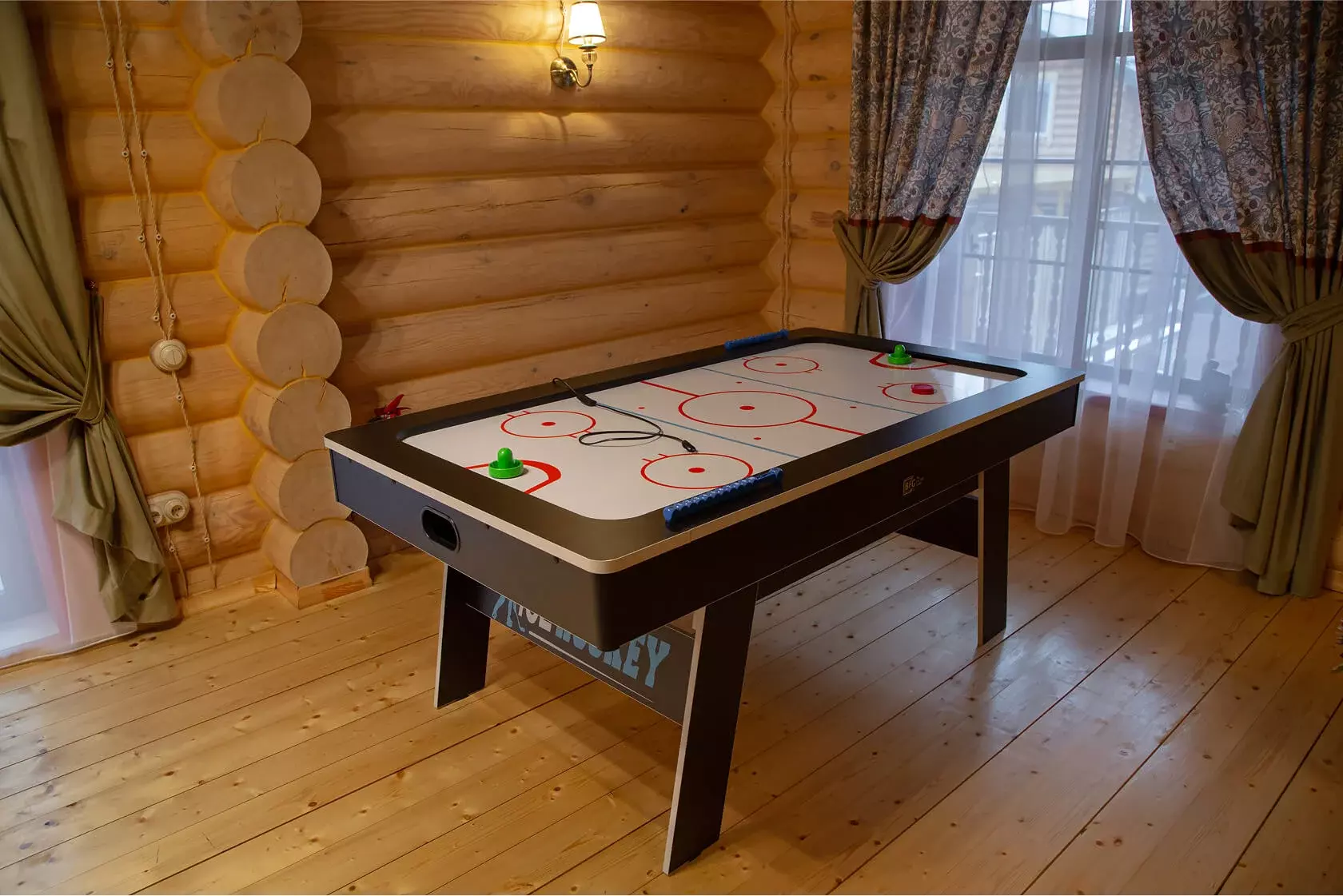 На втором этаже расположена лаунж-зона с мягкой мебелью, телевизором и настольными играми. Там же — бильярд и аэрохоккей, которые станут отличным завершением вечера.