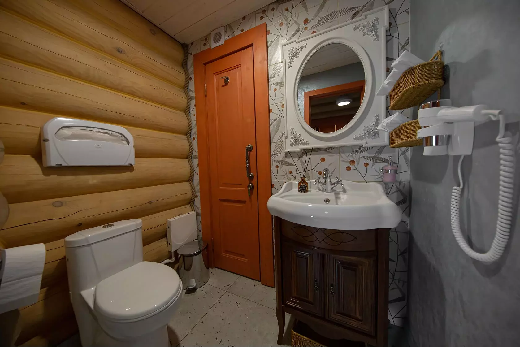 Чтобы отдых был лёгким, в тереме продумано всё: ♦ две спальни с ортопедическими кроватями, подушками и дизайнерским текстилем; ♦ просторный гардероб с вешалками, корзинами и сейфом для ценных вещей; ♦ санузел и душевая зона с одноразовыми полотенцами, феном и средствами ухода.