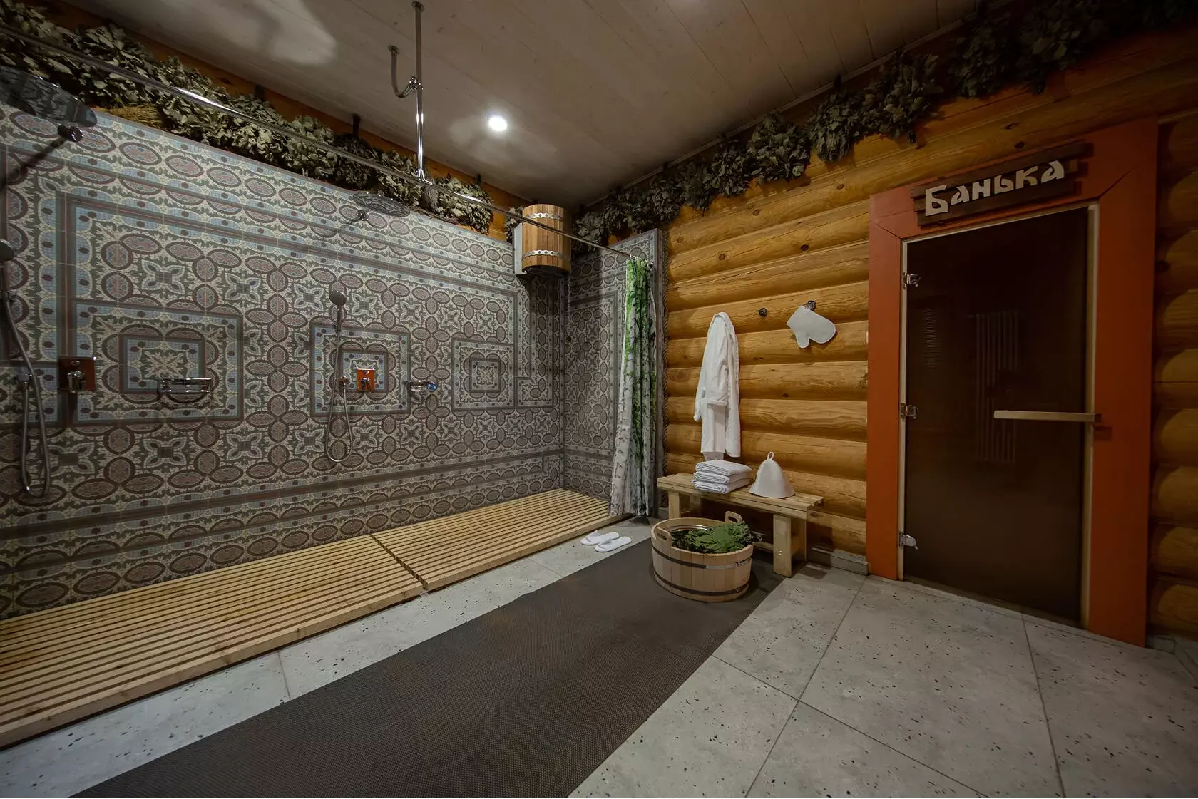Здесь идеально сочетаются разные этапы отдыха: ♦ классическое парение с вениками; ♦ охлаждение снегом или льдом прямо внутри; ♦ контрастный душ и обливание из ведра «водопад».